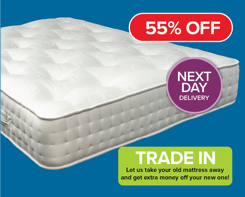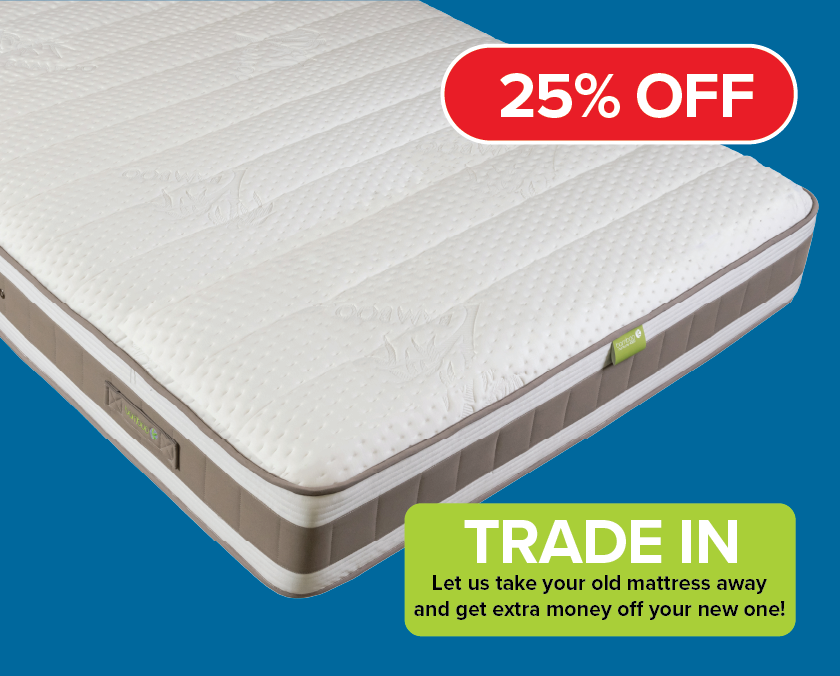 With our Trade-In Sale, you can save up to an extra £250 on a brand-new bed or mattress on top of the sale price