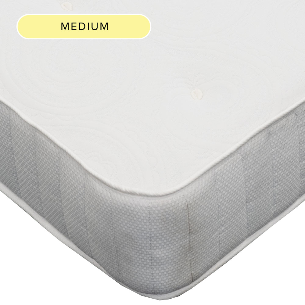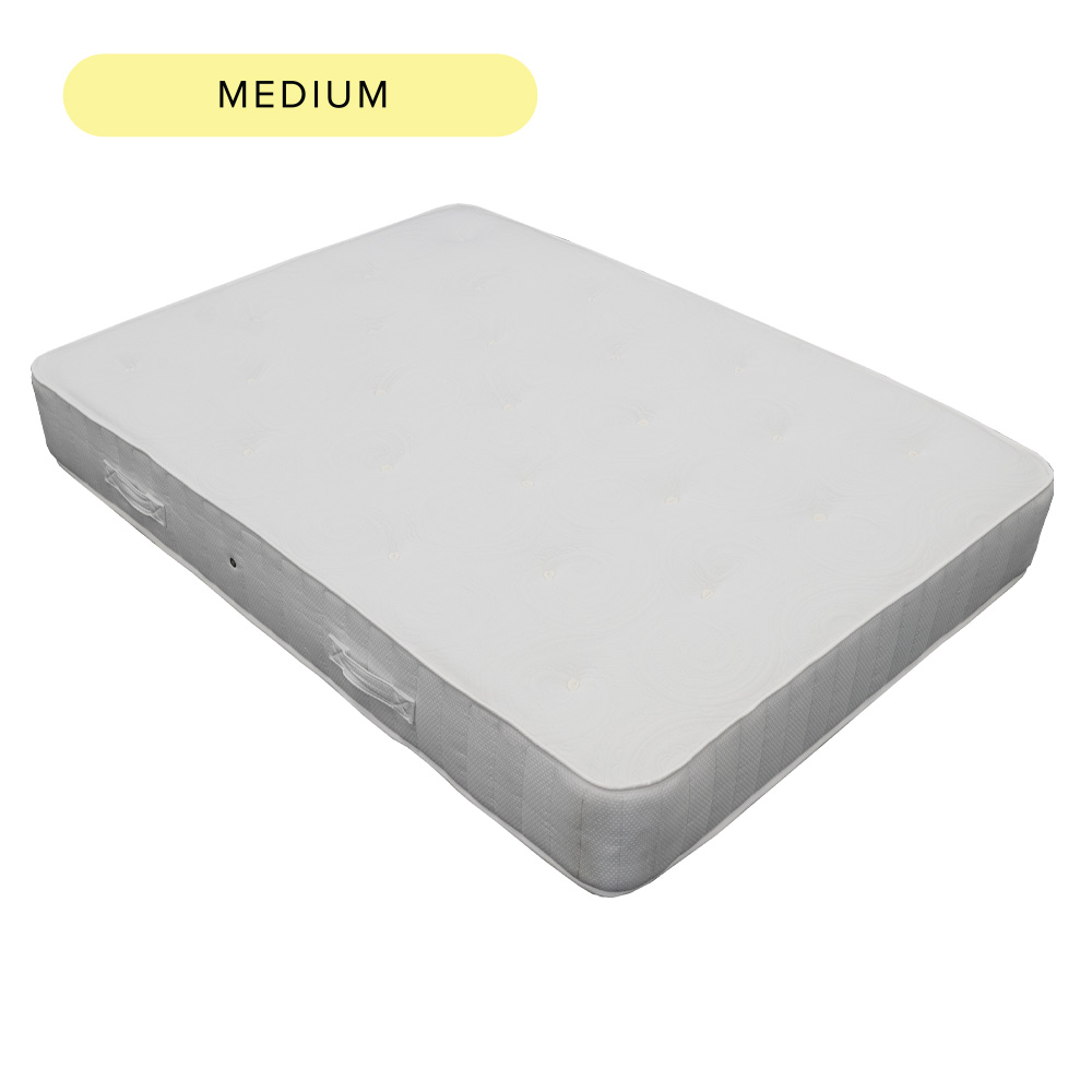 The Amber is comprised of 1000 (king size) individually hand nested pocket springs. Layered with a hypoallergenic soft, fluffy white fibre and finished with knitted fabric cover for a medium comfort and support for all sleeping positions.