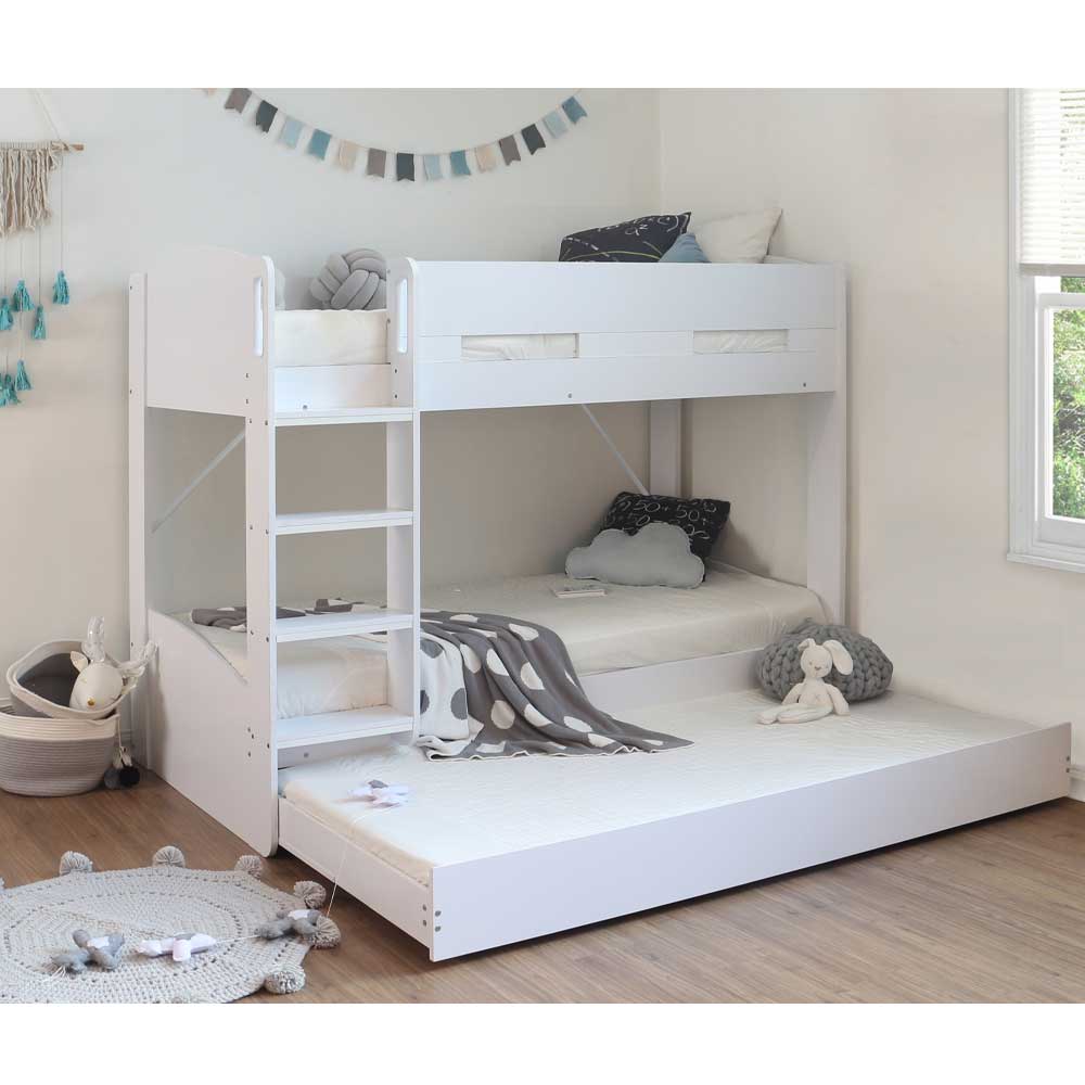 The Buxton is a sturdy modern style bunk bed available in a grey or white finish. The bunk comes complete with a pull out underbed.