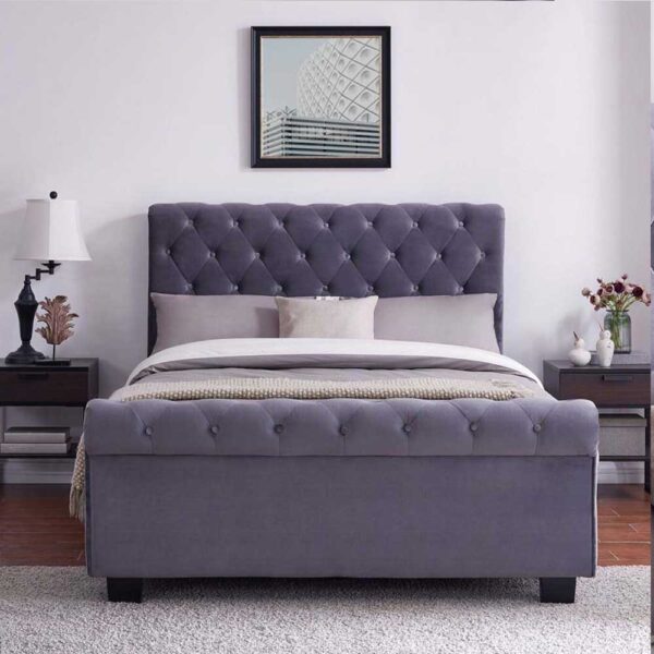 The Desole is a side lift ottoman bed frame. A chesterfield style deep buttoned headboard and footboard make this a striking centrepiece for your bedroom.