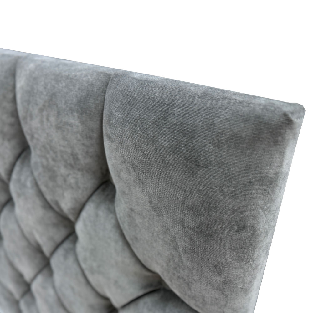 The Drift is a deep padded upholstered headboard featuring a traditional Chesterfield style buttoned design.