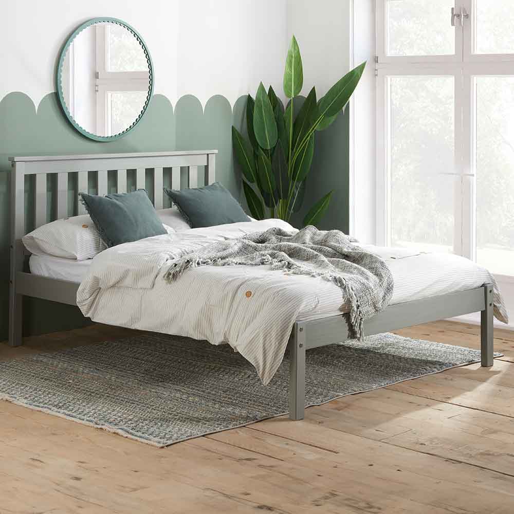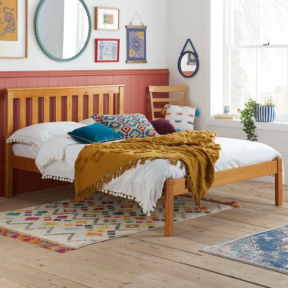 The Tilgate bed frame is a classic shaker style design with low foot end. Constructed from solid pine and features a solid slatted base to provide firmer support.